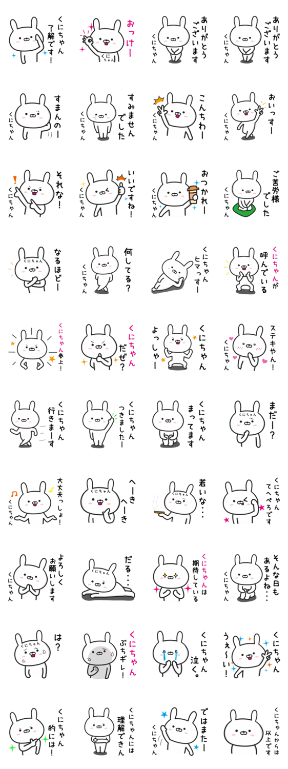 「くにちゃん」が使う、ウサギの名前スタンプです。日常会話で使いやすい基本セットです。