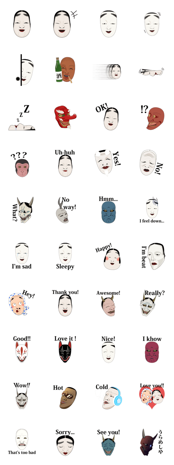 Coolな能面のスタンプ!皆で楽しく使おう!