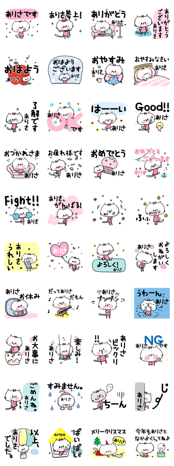 | スタンプ説明 | ありささんの為のお名前スタンプです。プレゼントにもどうぞ♪ |