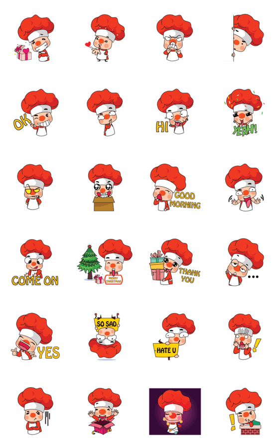 Christmas Chef is a set of Christmas stickers. This is a sticker set for a cheerful chef, funny, kind, but also naughty to to express your variety of emotions.