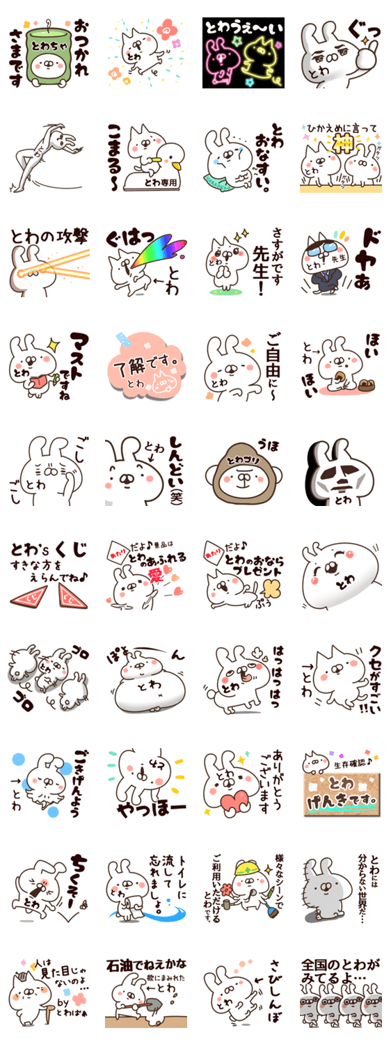 とわ/ちゃん/さん/君/使う/名前/あだ名/名字/スタンプ/トワ/永久/永遠/十羽/十輪/都羽/とわこ/とわか/とわの/とわな/とわみ/とわえ/とわよ/とわね/おとわ/専用/面白い。
