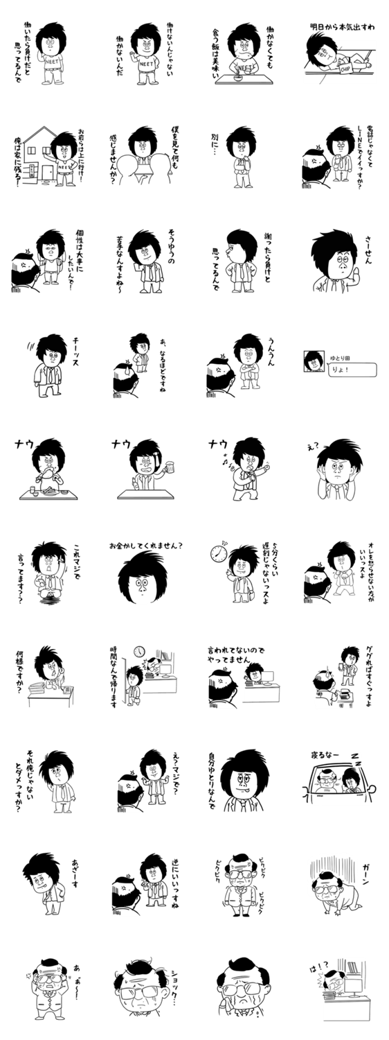 ゆとり世代のゆとり田君と部長とのやり取りを表現したスタンプです!経験された方も多いのでは?