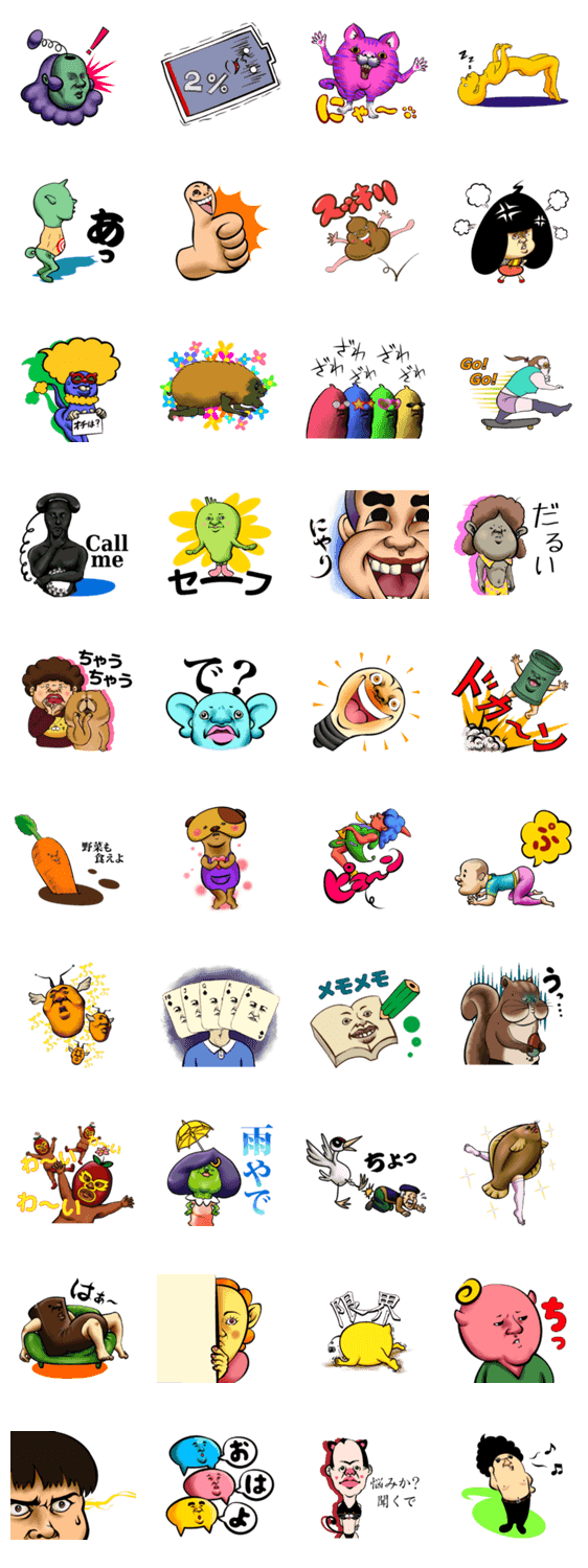 気持ち悪いけど癖になるそんなキャラクター達でいっぱいのスタンプですkikistampを使って皆を微妙な気分にさせよう!