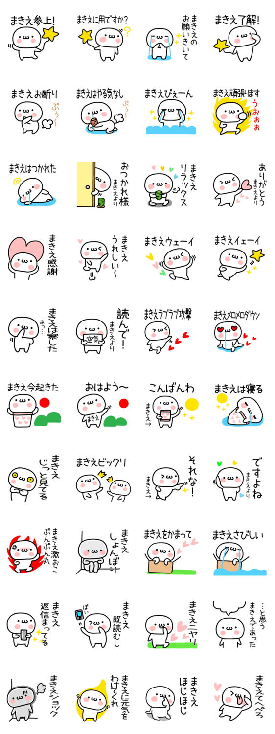 名前やあだ名に「マキエ」がつく方専用の名前スタンプです。しろくてまるいキャラクターです。