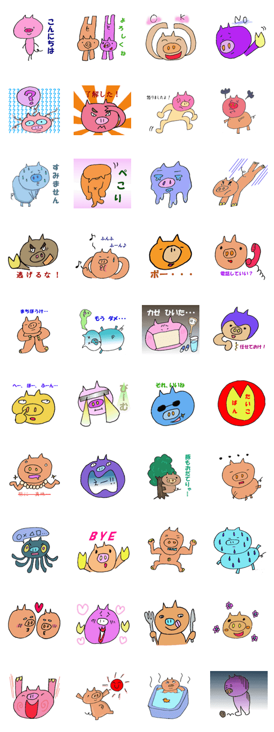 豚になら何言われても気にしない!かわいいお鼻、愛らしい顔、なんてったって豚足!豚をこよなく愛するあなた、このスタンプをどうぞ~