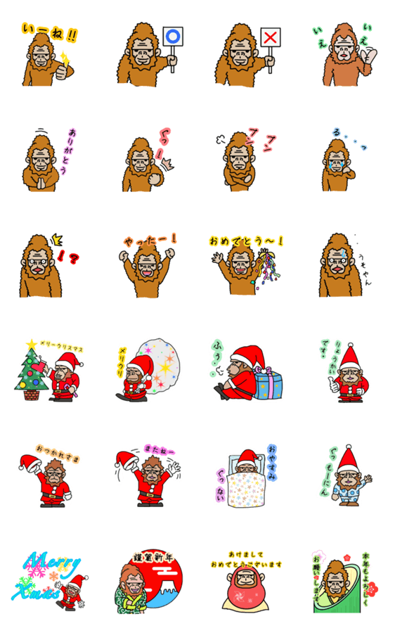 ゴリラ スタンプ 小さい 付き クリスマス お正月 チビ