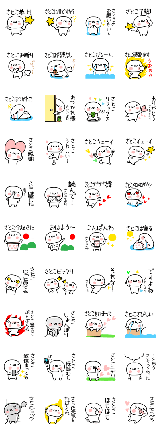 名前やあだ名に「サトコ」がつく方専用の名前スタンプです。しろくてまるいキャラクターです。