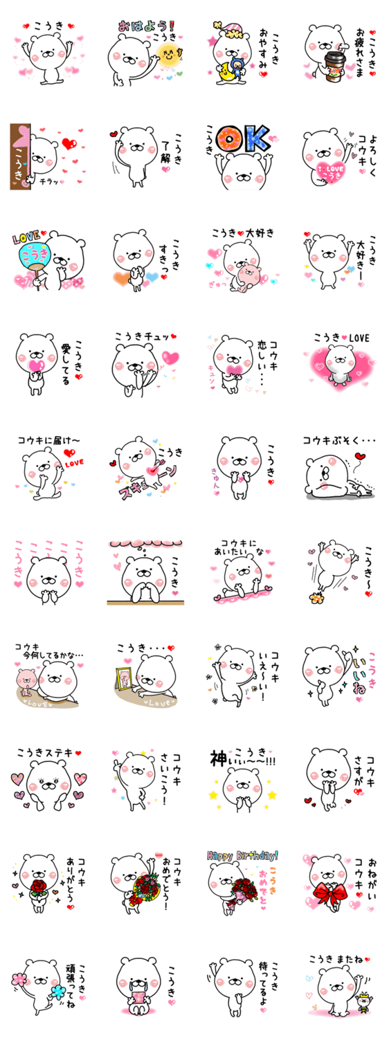 【こうき】に送る白熊くまたお名前スタンプ -LINEスタンプマニア