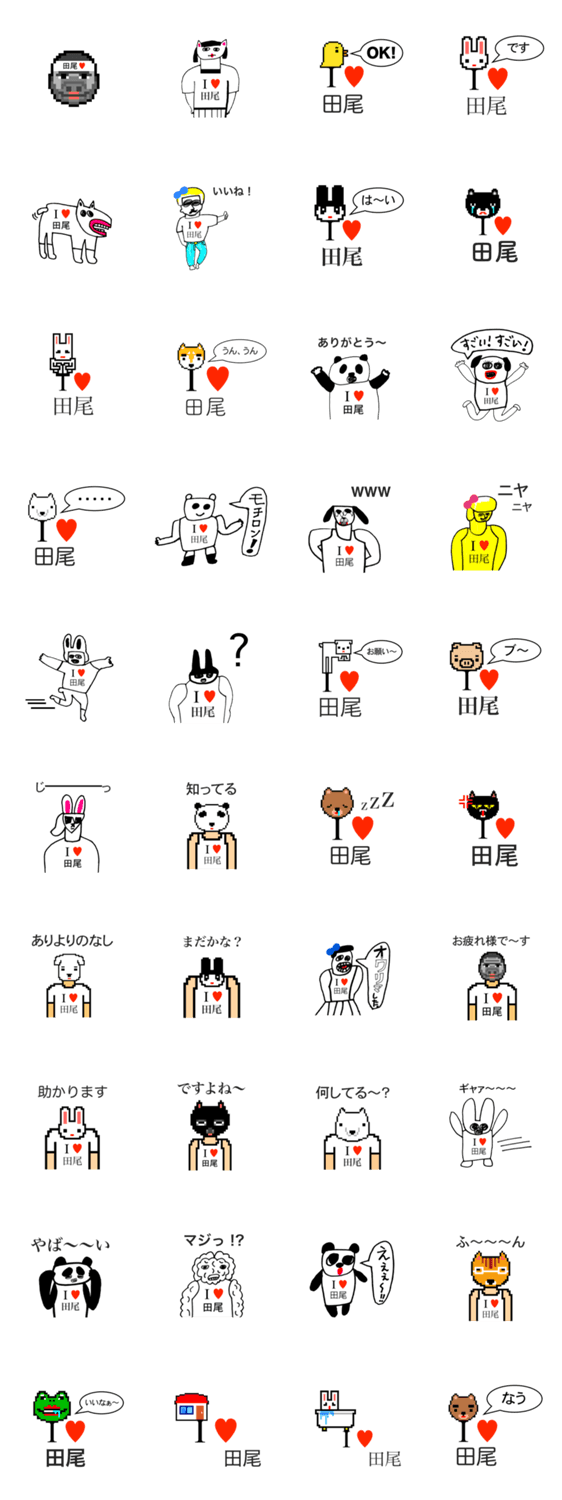 田尾さんに送れる名前(名字・苗字)スタンプです。
