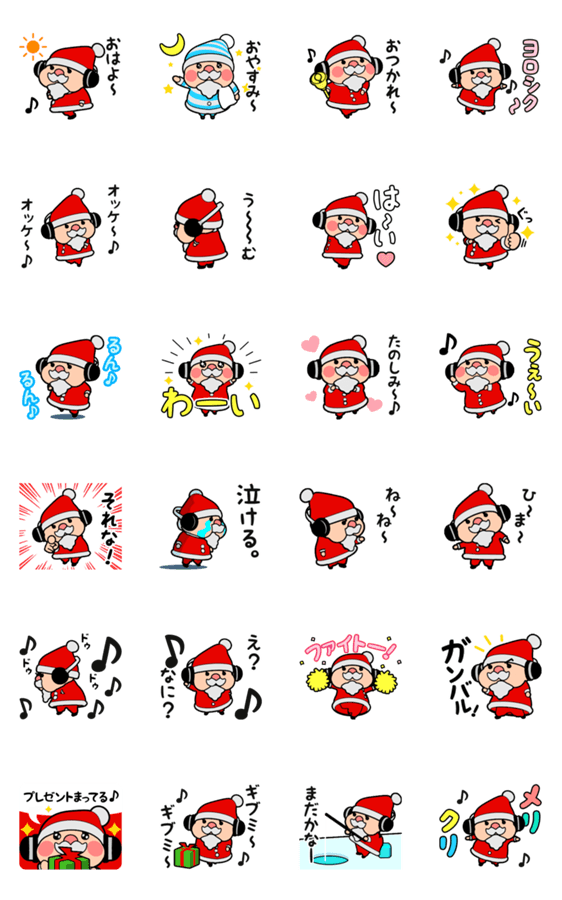 お茶目なサンタクロースのおじさんがまったり踊る12月にぴったりのスタンプです♪クリスマスはもちろん、冬の毎日にもつかえるよ☆