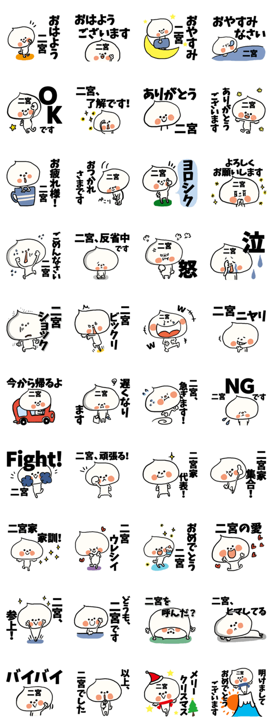 | スタンプ説明 | 二宮さんの為のお名前スタンプです。プレゼントにもどうぞ♪ |