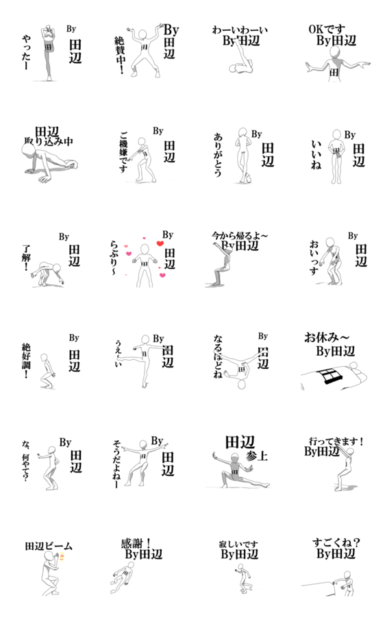 田辺さん専用動く名前スタンプ。空手,体操,フィギュアスケート,ブレイクダンスの回転技炸裂!