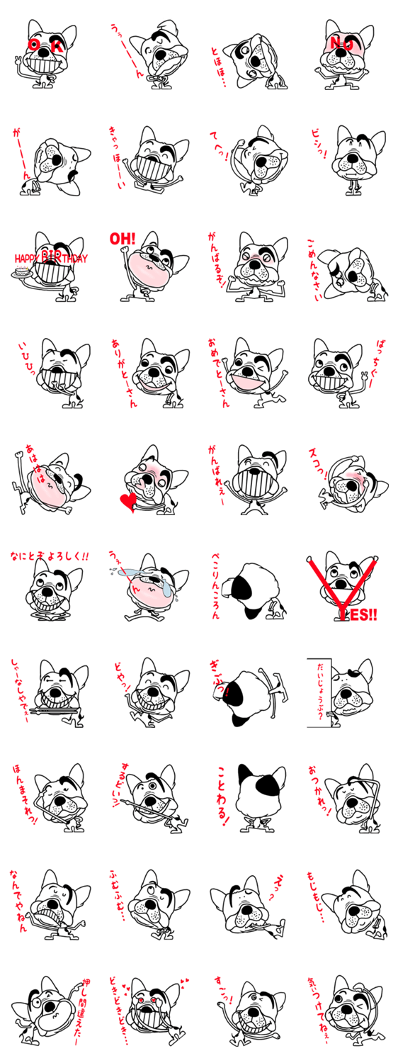 大阪弁フレンチブルドック " BURU " 様々な表情が面白かわいい犬スタンプです。