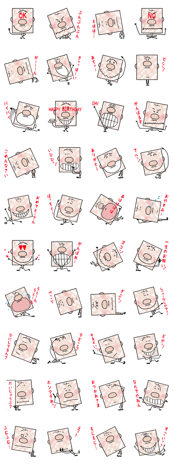 四角い顔がインパク大!色んな表情が面白いおっさんスタンプです♪