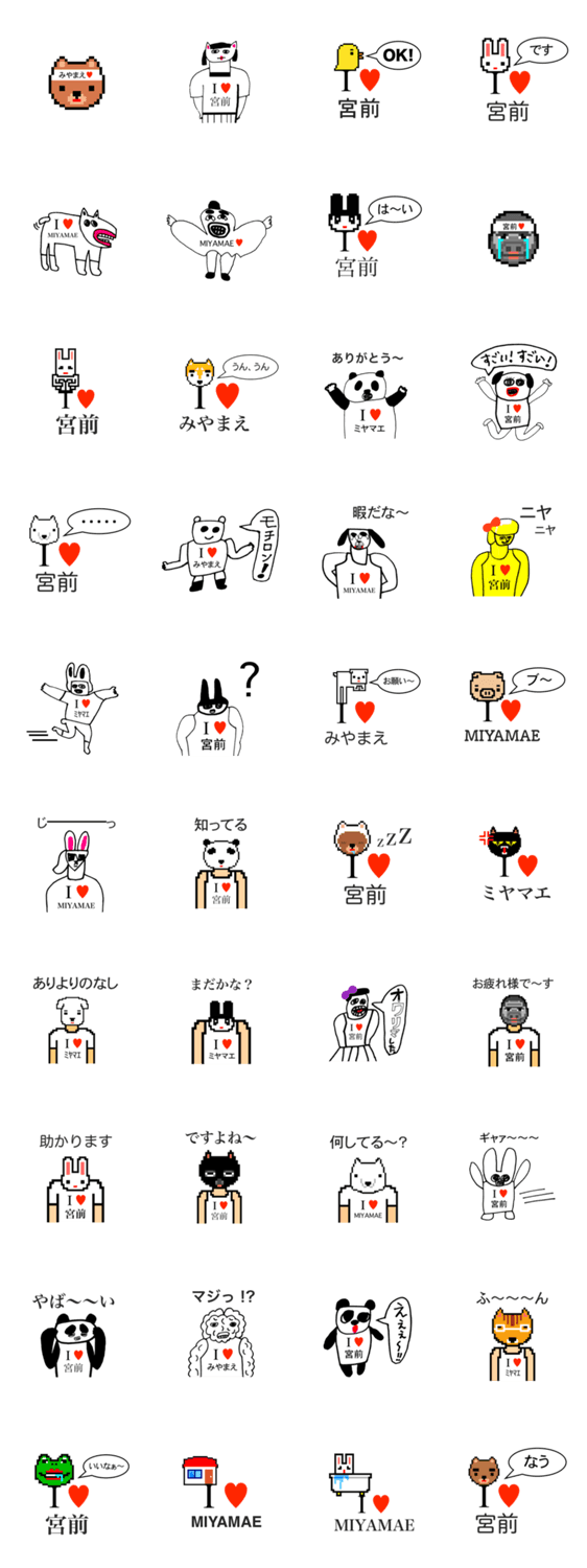 宮前(みやまえ・ミヤマエ)さんに送れる名前(名字・苗字)スタンプです。