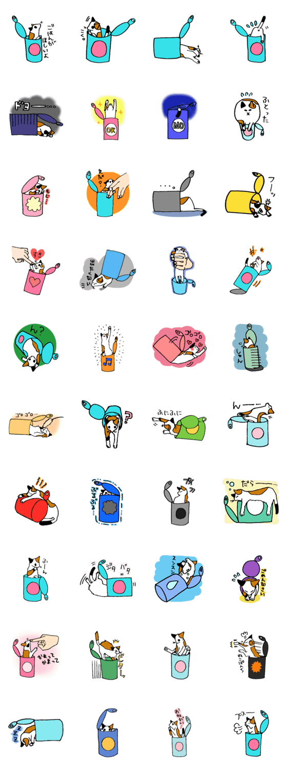 空き缶の中に入るのが大好きなねこのスタンプです。