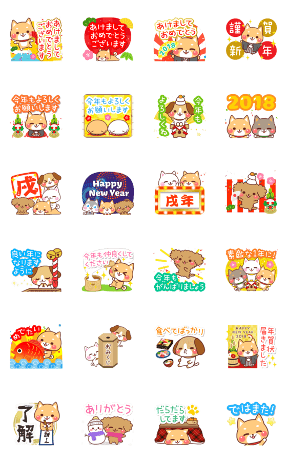 | スタンプ説明 | 2018年の正月に使える戌年のスタンプ!新年の挨拶も入っているので年賀状代わりにどうぞ♪ |