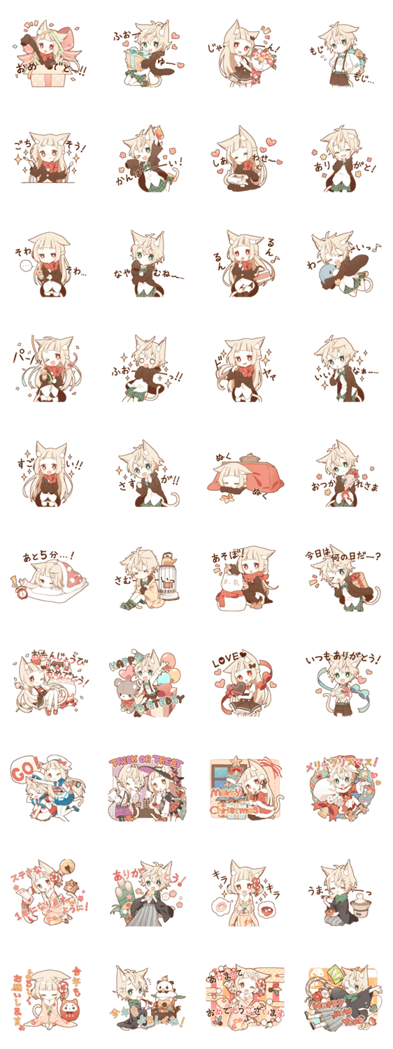お正月やクリスマス、大切な人のお誕生日やお祝い事を、ゆるねこ女子・男子が一緒にお祝いします。特別な日や季節のイベント、日常で使いやすいスタンプを揃えました!
