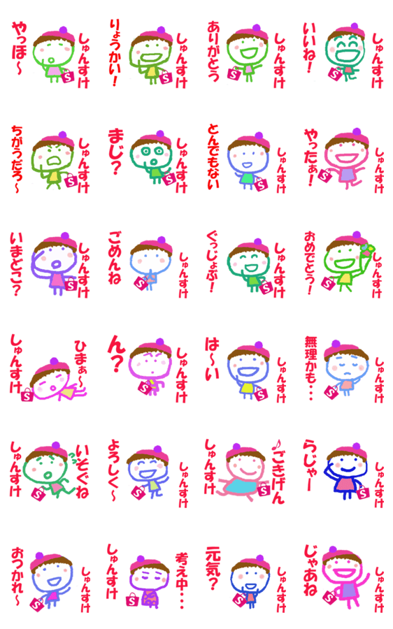スタンプ説明 全国のしゅんすんすけくんが使えるスタンプです。