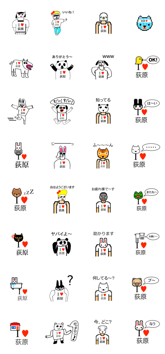 荻原(おぎわら・オギワラ)さんに送れる名前(名字・苗字)スタンプです。