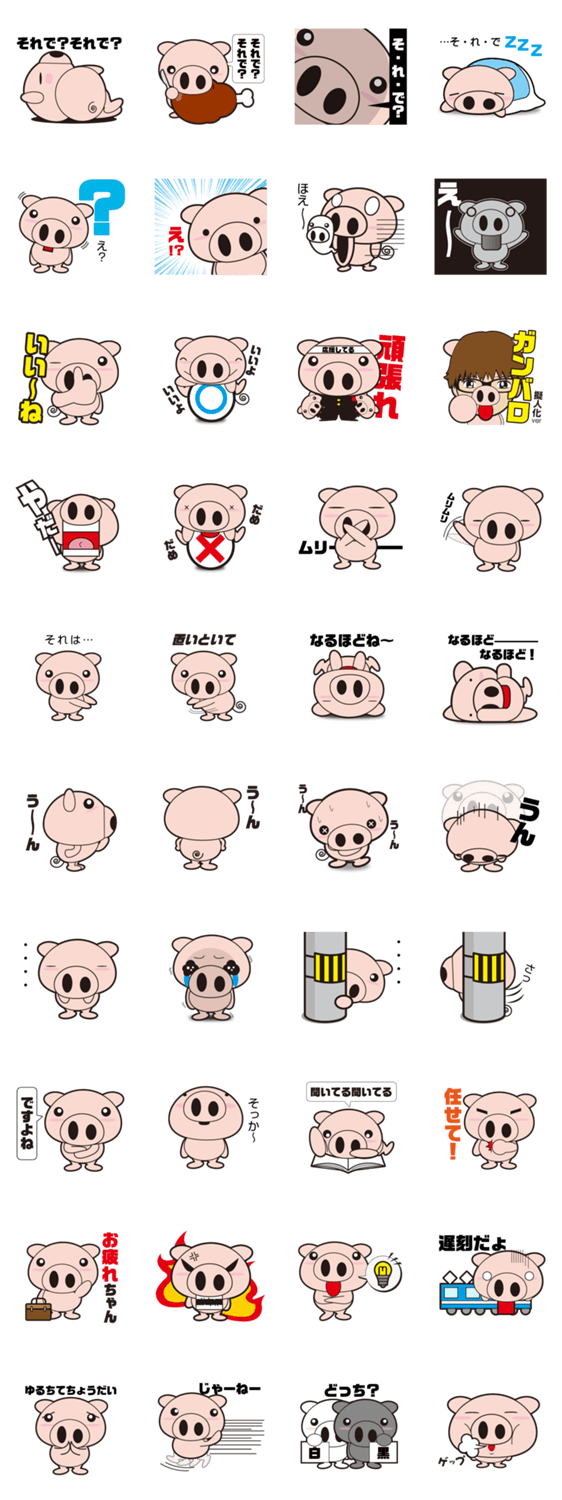 | スタンプ説明 | ぶたキャラ「ぶちゃ丸」の第二弾スタンプが登場!頷き、相づちや返答をメインに、友達から先輩との会話など学生から社会人トークでも使えるスタンプです。 |