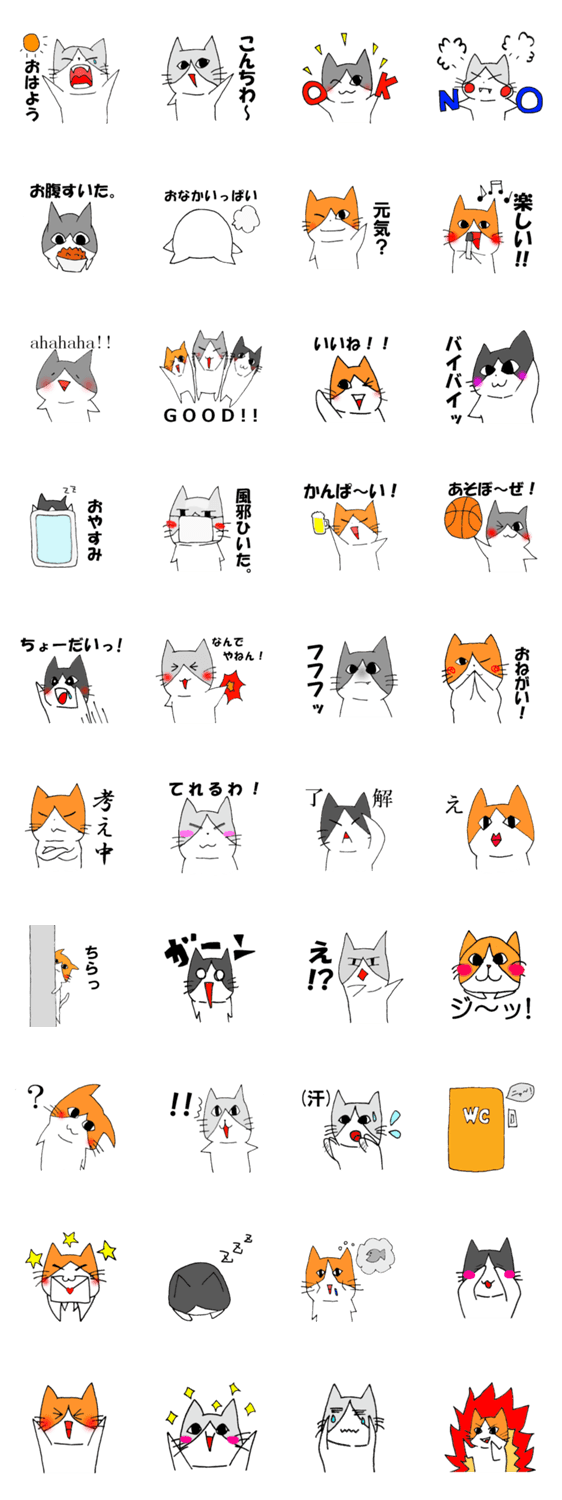 可愛い2次元ねこ登場!仲のいい4匹が活躍しています!日常会話で使えるスタンプが揃っているよ!