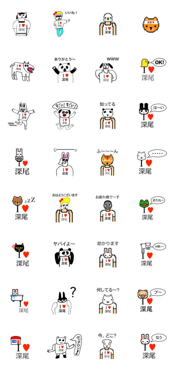 深尾(ふかお・フカオ)さんに送れる名前(名字・苗字)スタンプです。