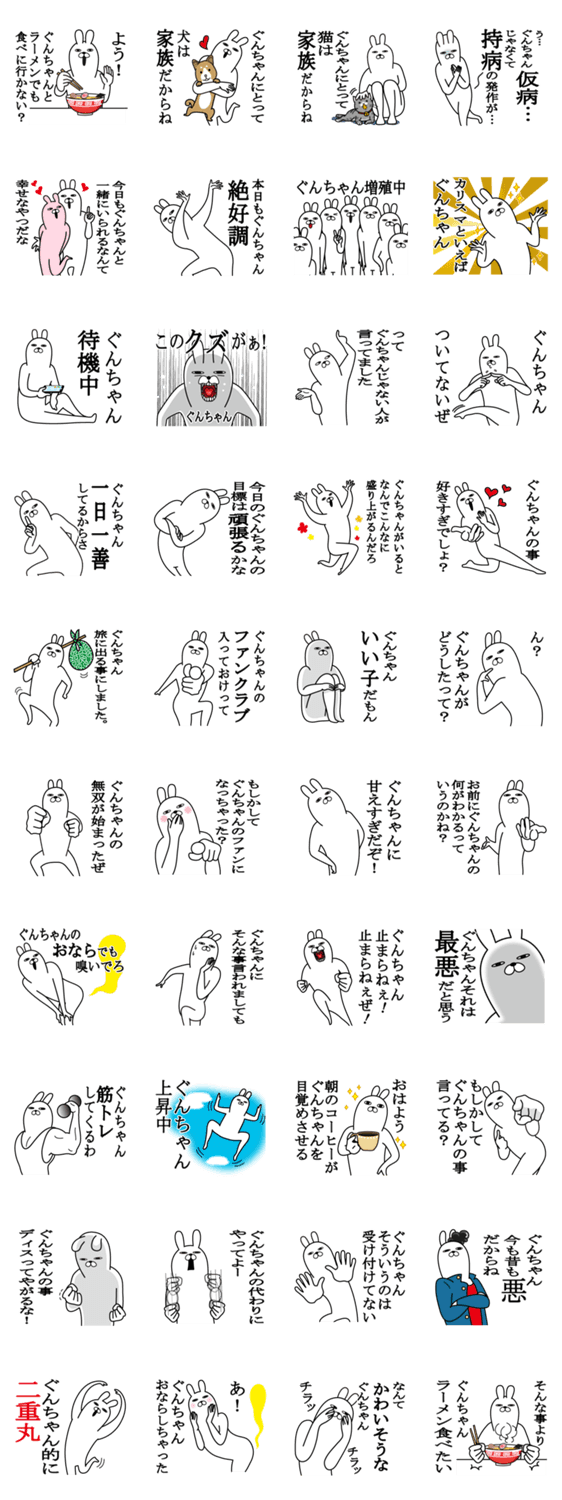 ぐんちゃんが使う面白スタンプです。ぐんじ,ぐんま,ぐんかわ,郡司,群司,群司,群馬,群馬,軍川,軍村,群人,群青,軍次,軍太,グンなど全国のぐんちゃん専用のスタンプです