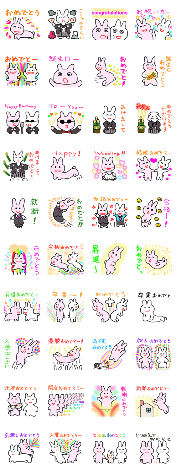 お祝い好きのウサギのカップルが、おめでたい出来事をお祝いしてくれます。週に一回は誰かをお祝いしてあげましょう!