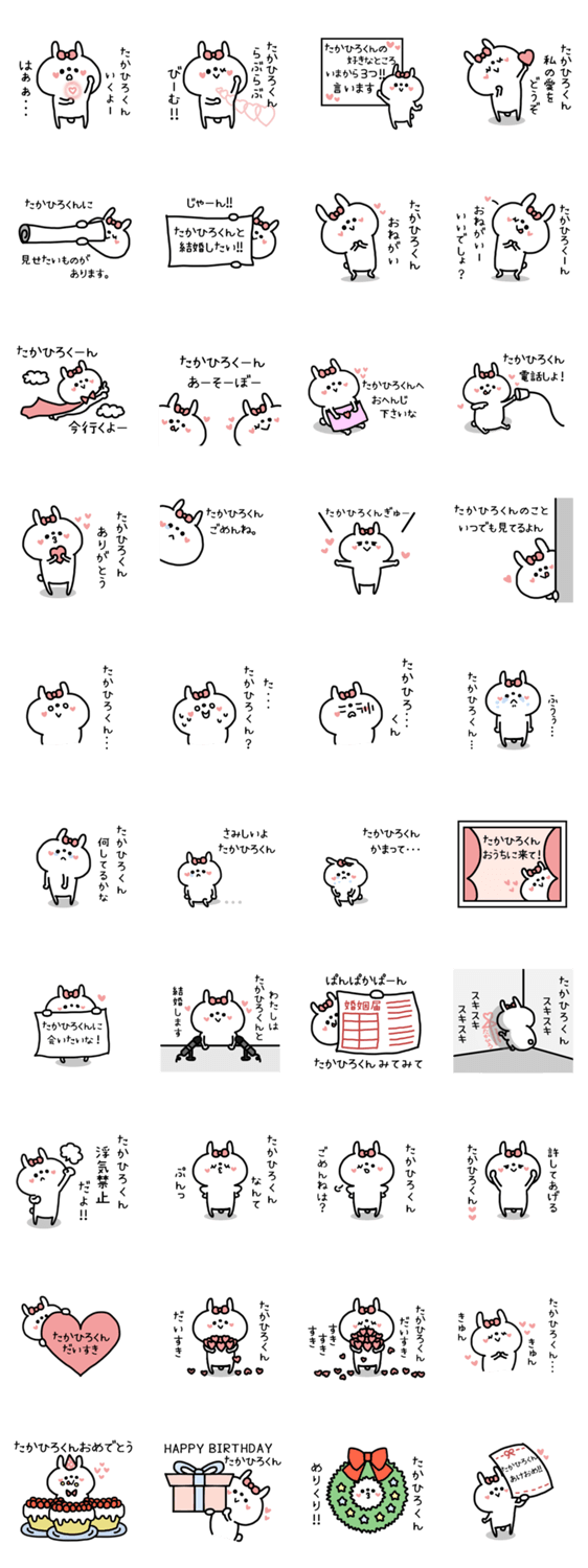 名前、あだ名が「たかひろ君」な彼氏、友達、家族に送れるスタンプです♡♡タカヒロ、TAKAHIRO、貴大、孝弘、隆弘、敬浩 、孝宏、隆浩、隆大、貴洋、貴広、孝広、孝洋