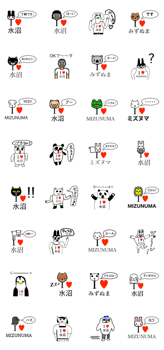 水沼(みずぬま・ミズヌマ)さんに送れる名前(名字・苗字)スタンプです。
