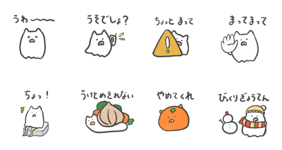 白ネコのあいうえお・・・ってるスタンプ