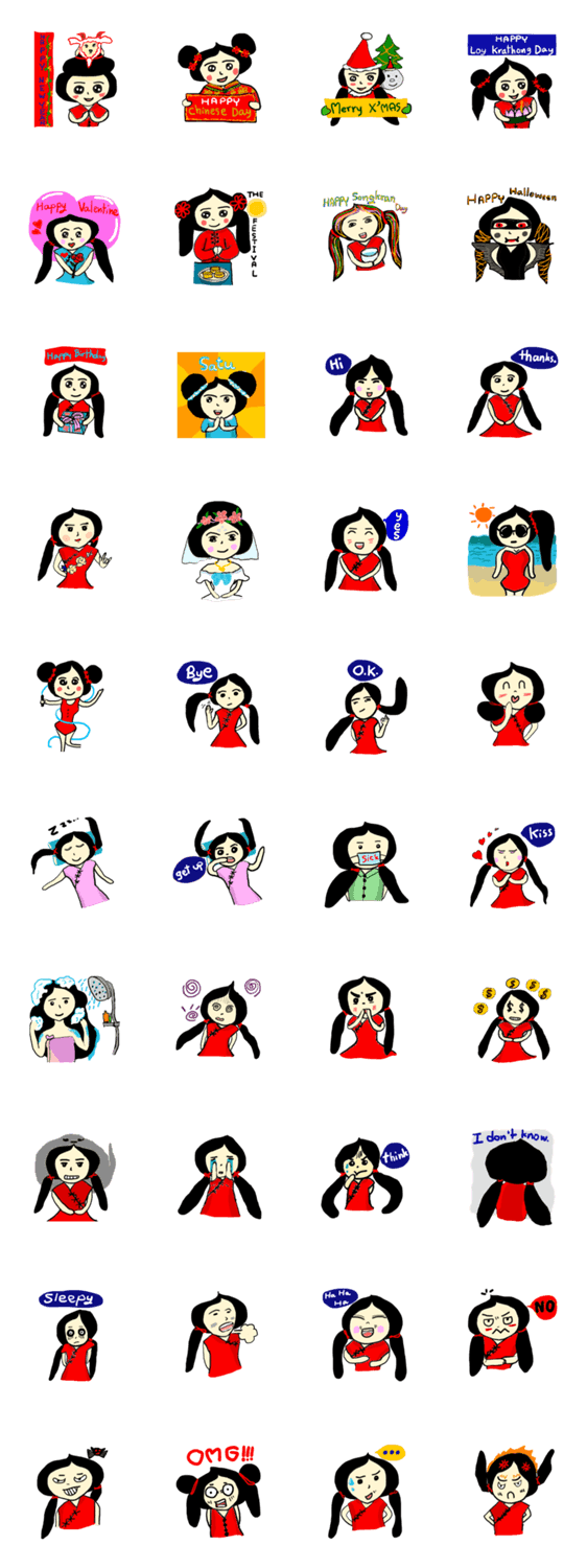 | スタンプ説明 | Yai-Muoy-Pherng is a pretty girl. Happy every season. You will find her in conversation . Send a feel on a daily life. |