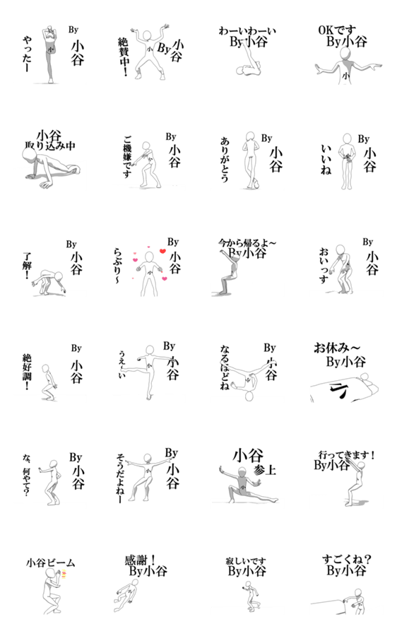 小谷さん専用動く名前スタンプ。こたにさん,こたちゃん,こたさん,こたやん,こっちゃん,こ-さん,こ-ちゃん,こ-やん,宙返り,スピン,ターンの回転技炸裂!