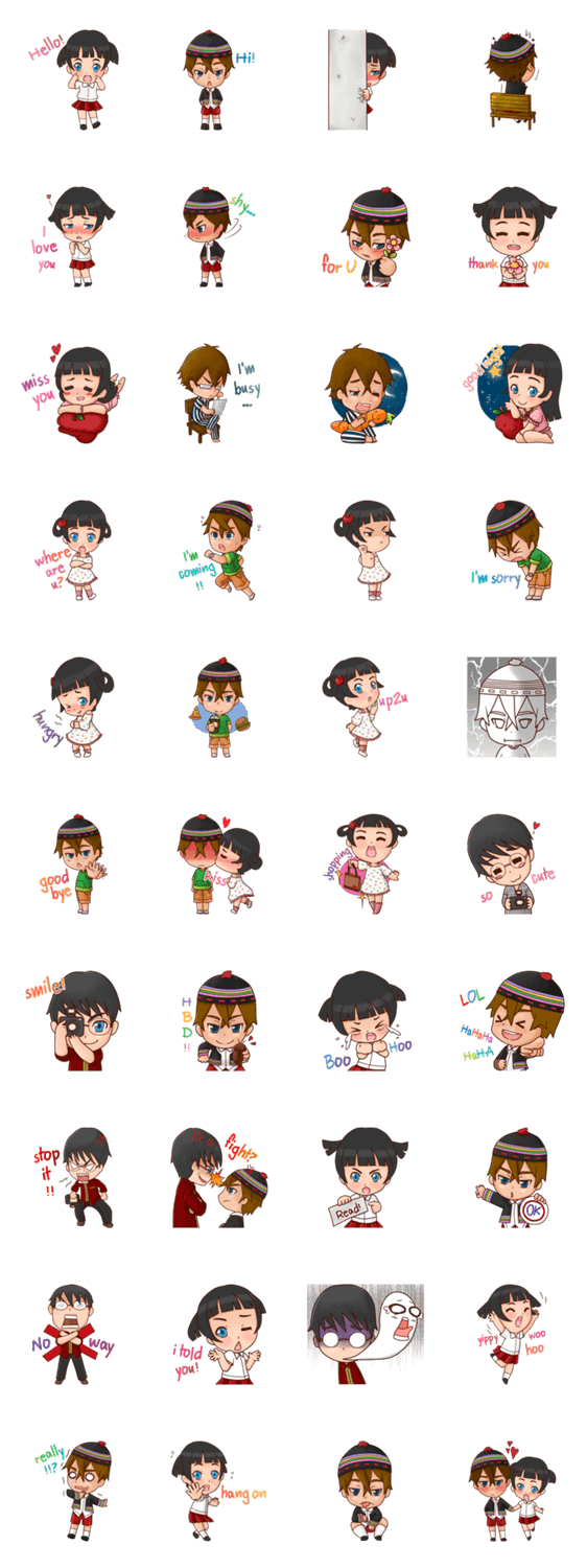 | スタンプ説明 | Meet again! I'm apple, little cute girl with twin tail. Today I come with my friend, Makor. And my older brother, Almond. Hope you love in my puppy love. ty! |