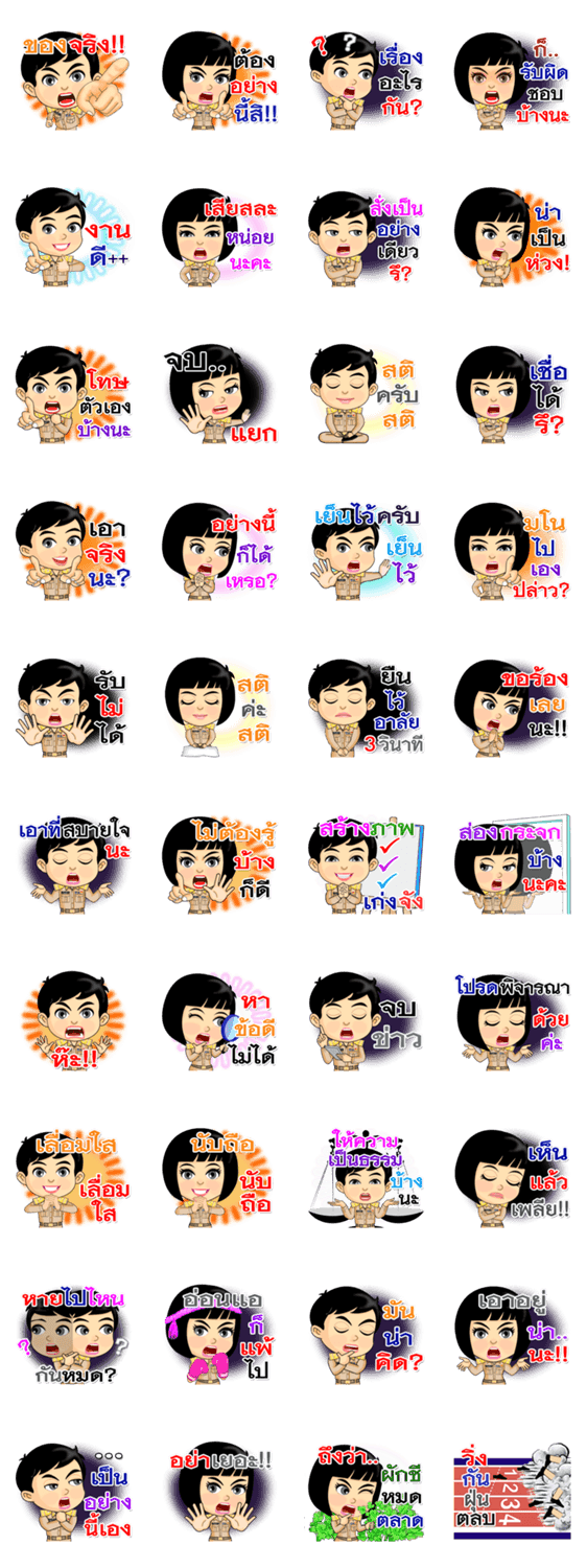 | スタンプ説明 | Nong Num-Fon and Nai Kon-Mek are Thai Officers. |