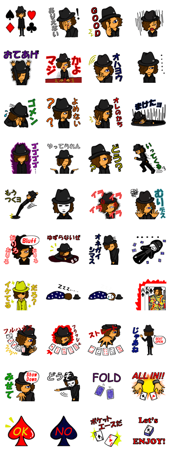 勝負師の日常での心境を背景にしたスタンプです。主にポーカーを題材にして作成しました。クセのあるスタンプから、日常で使いやすいスタンプです。