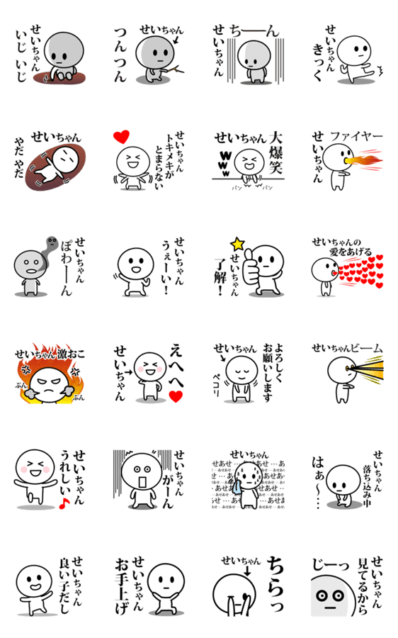 せいこ/せいか/せいな/せいじ/せいや/せいき/せいたろう/せいのすけ/せいいち等、【せいちゃん】の名前入りスタンプ