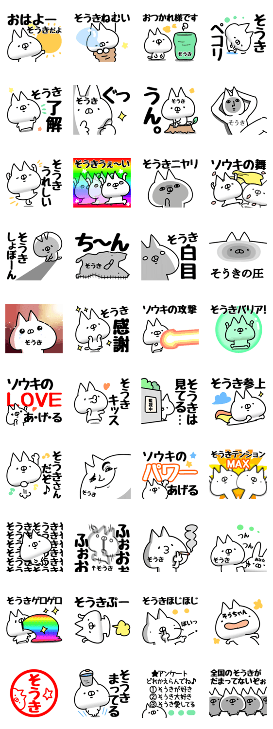 そうき/ちゃん/さん/くん/使う/名前/あだ名/名字スタンプ/ソウキ/双喜/双木/創輝/創喜/創基/双樹/総記/創己/奏来/専用/面白い
