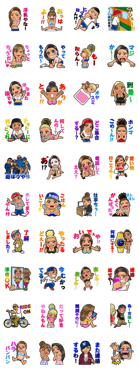 | スタンプ説明 | 『B-BOY達の休日』に続き、B-girlスタンプが登場!いつもかわいく時にはセクシー!でもホントは結構どんくさかったり、既読無視に怒ったり、寂しがりやなんです。笑 |