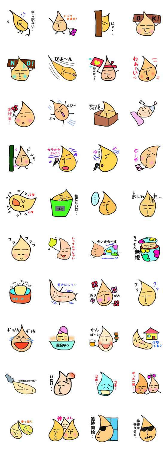 とんがり頭がチャーミングな「とんがりん」です。日常会話で使えるものを中心に揃えました。