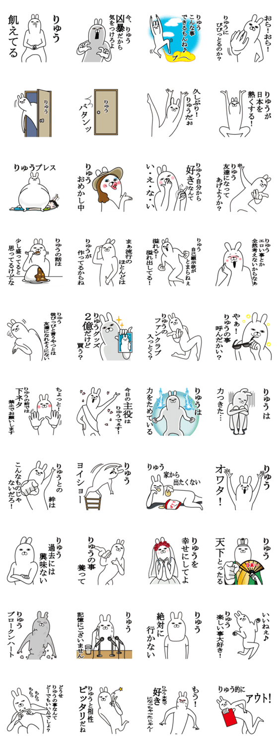 りゅうが使う面白スタンプです。りゅう,りゅうじ,りゅういち,りゅうせい,りゅうへい,りゅうた,りゅうたろう,りゅうのすけ,竜,龍など全国のりゅうに送るスタンプです。
