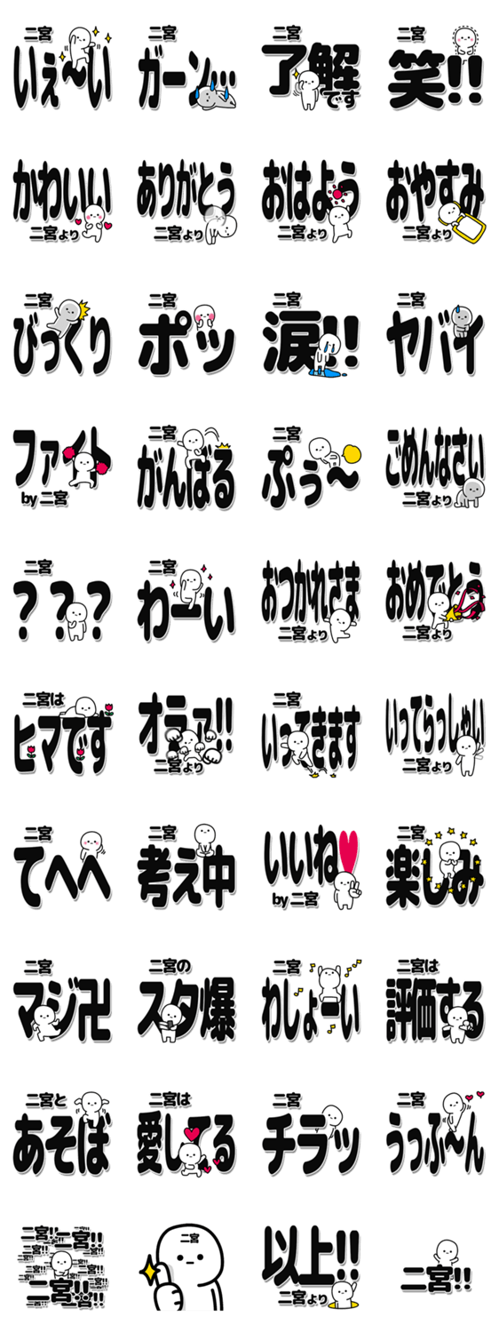 二宮さんのための便利に面白く返信、挨拶できるデカ文字のスタンプです。シンプルなので誰にでも使えます!