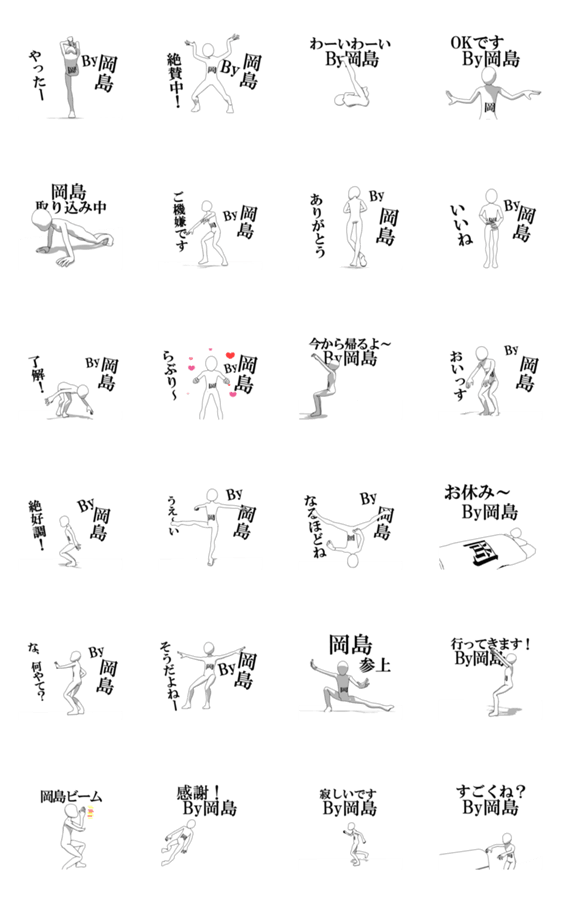 岡島さん専用動く名前スタンプ。オカジマ,おかじま,おかしま,おかちゃん,おかさん,おかやん,おっちゃん,お-さん,お-ちゃん,お-やん,,