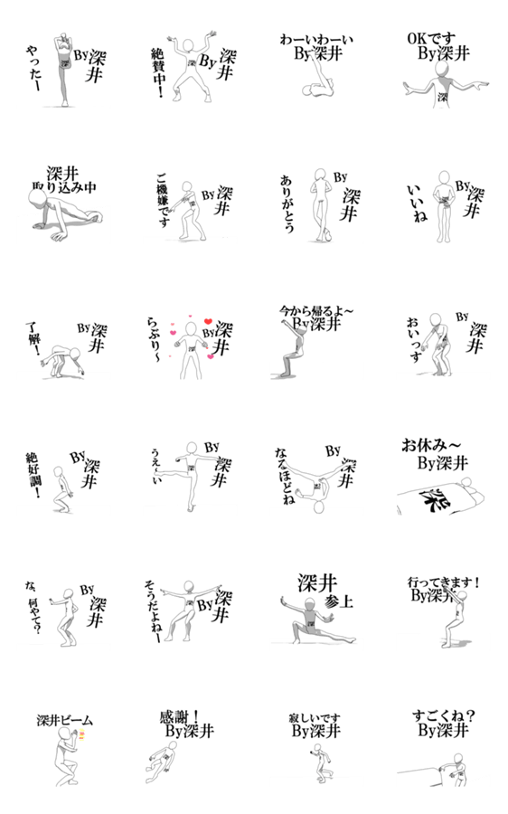 深井さん専用動く名前スタンプ。フカイ,ふかい,ふかざわ,ふかちゃん,ふかさん,ふかやん,ふっちゃん,ふ-さん,ふ-ちゃん,ふ-やん,ふきい,