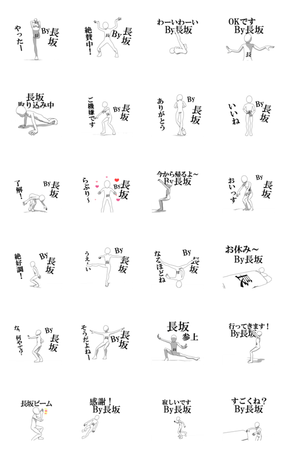 長坂さん専用動く名前スタンプ。ナガサカ,ながさか,ながさわ,ながちゃん,ながさん,ながやん,なっちゃん,な-さん,な-ちゃん,な-やん,,