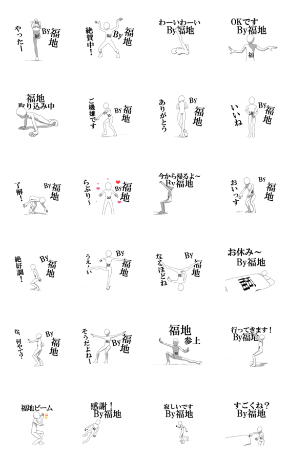 福地さん専用動く名前スタンプ。フクチ,ふくち,ふくじ,ふくちゃん,ふくさん,ふくやん,ふっちゃん,ふ-さん,ふ-ちゃん,ふ-やん,ふくぢ,