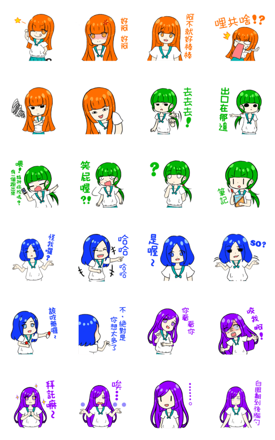 | スタンプ説明 | Four high school students usually slap in the face of the day to Hello ~ |
