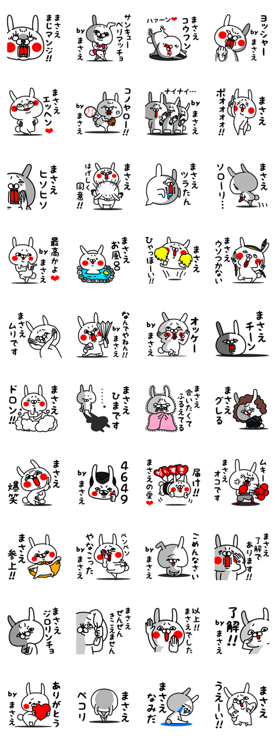 全国の「マサエ」専用のかわいいウサギのスタンプ。