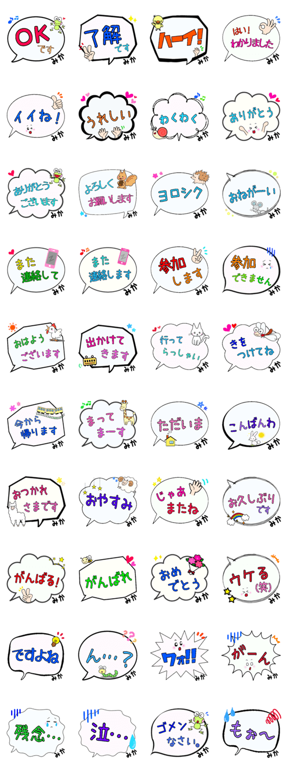 名前スタンプ、みか専用の大きな吹き出し。デカ文字、挨拶、連絡、返事、日常会話、よく使う言葉。みかこ、美嘉、美香、美佳、美夏、美加、美華、美花、三佳、美歌、実香